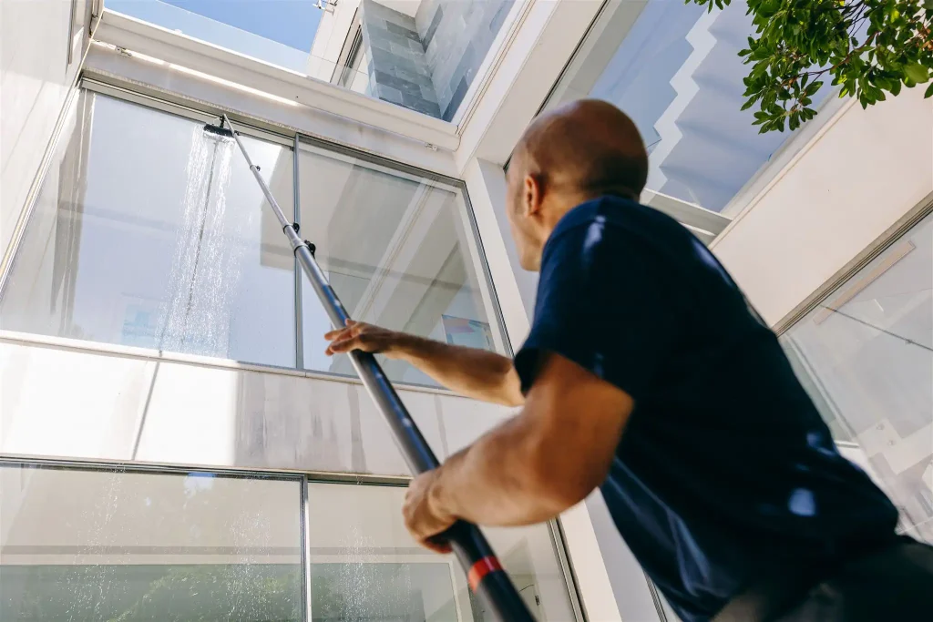 En CleanMan limpiamos tus cristales con tecnología de agua osmotizada, llegando hasta 14 metros de altura sin interrumpir tu actividad y sin riesgos para nadie.